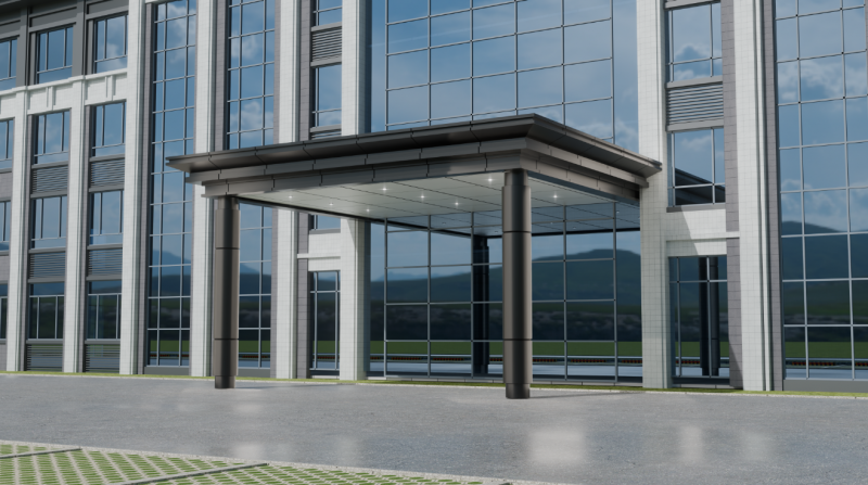 現(xiàn)代廠區(qū)辦公樓外立面幕墻